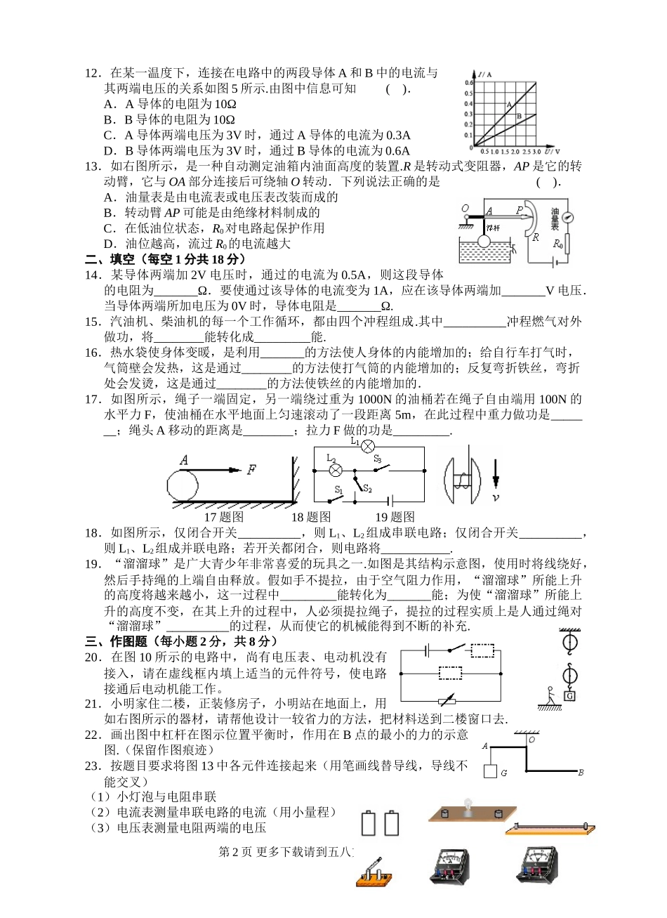 初三物理九年级物理苏科版九年级物理第11-13章试题及答案.doc_第2页