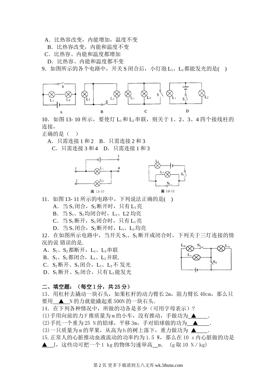 初三物理九年级物理吴江市青云中学2014-2015年第一学期初三期中物理试卷及答案.doc_第2页