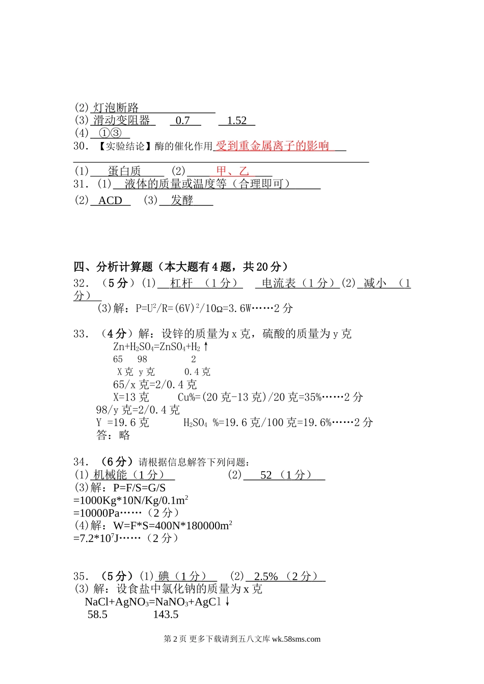 初三物理九年级物理吴兴区2013九年级上学期科学期末试卷及答案.doc_第2页