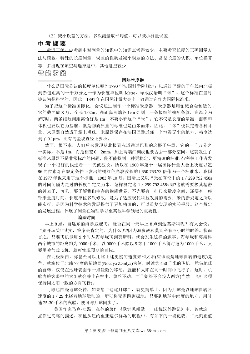 初三物理九年级物理物理九年级人教新课标12.3时间和长度的测量课课解析与练习.doc_第2页