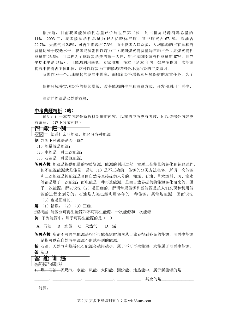 初三物理九年级物理物理九年级人教新课标17.1能源家族课课解析与练习.doc_第2页