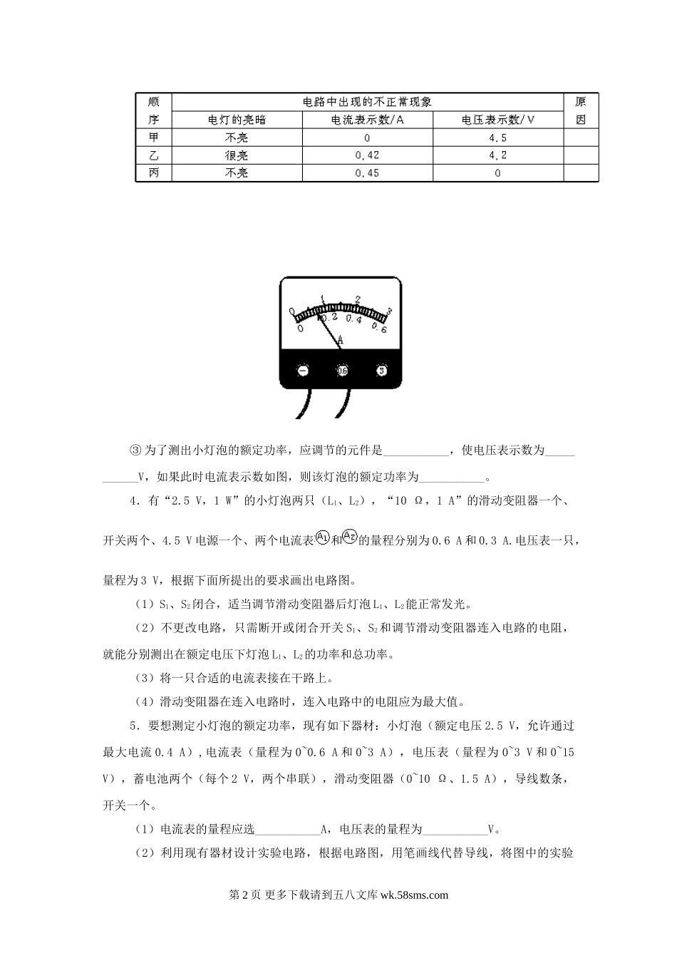 初三物理九年级物理物理九年级上教科版第七章第2节灯泡的电功率.doc_第2页