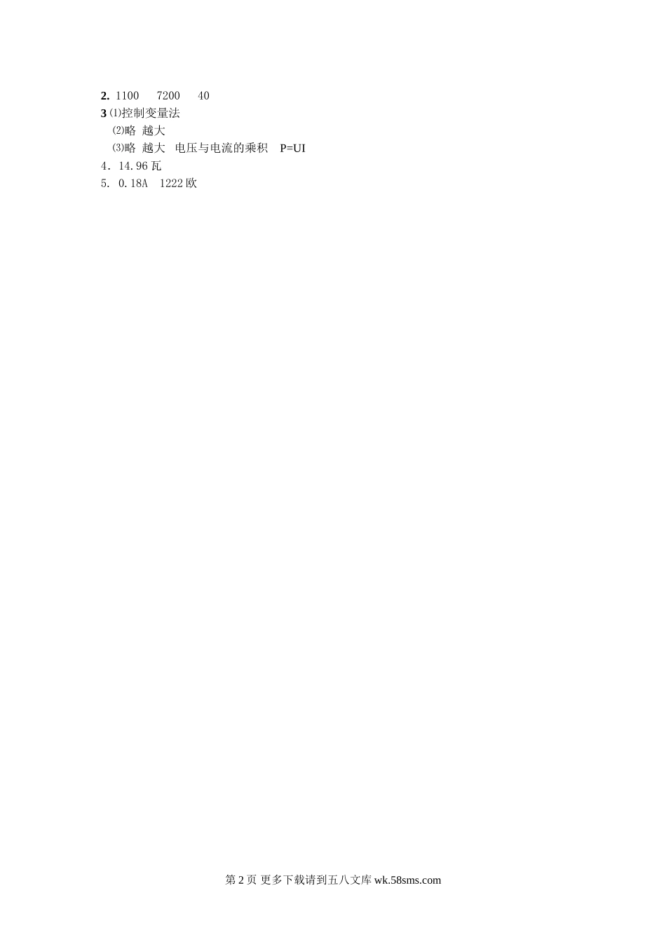 初三物理九年级物理物理九年级上教科版第七章第2节电功率同步测试.doc_第2页