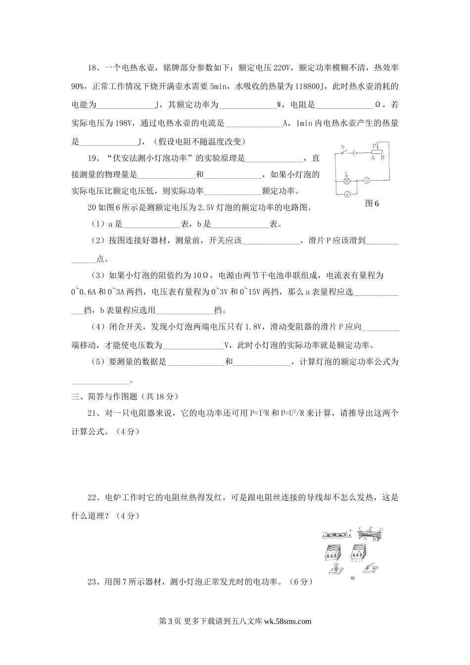 初三物理九年级物理物理九年级上教科版第七章电功率综合测试.doc_第3页
