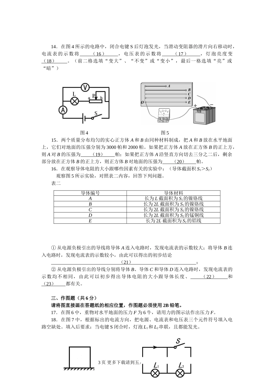 初三物理九年级物理闸北区九年级期末物理试卷及答案.doc_第3页