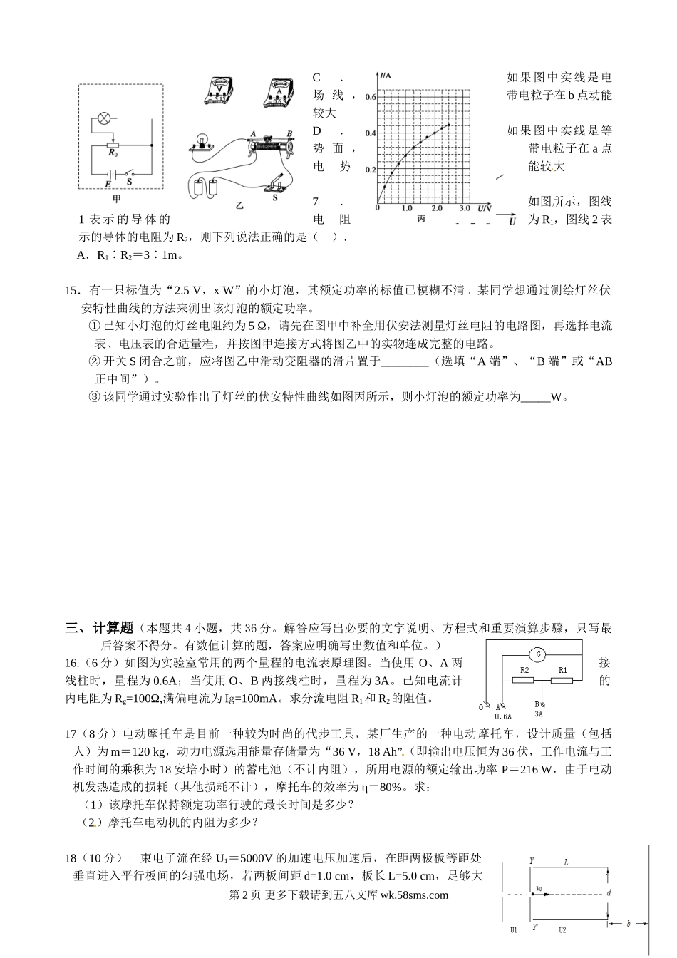 高二物理福建八县一中期中联考高二上学期物理试卷及答案.doc_第2页