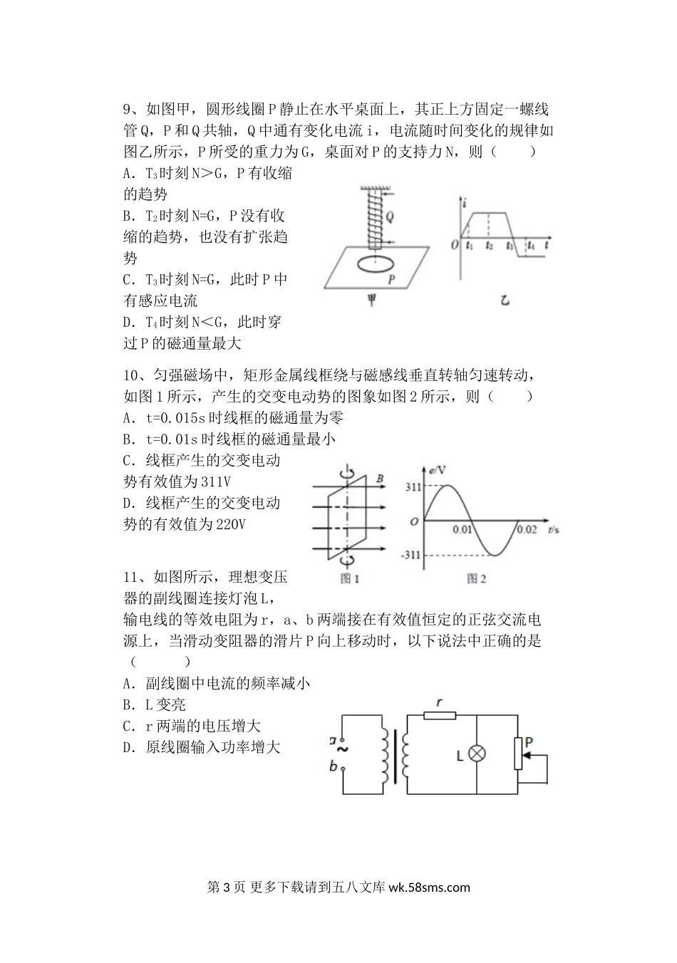 高二物理福州八市第二学期高二物理期中联考试卷及答案.doc_第3页
