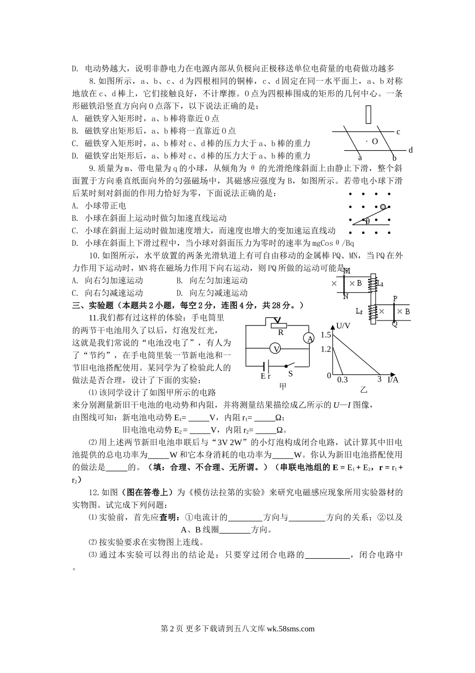 高二物理高二第一学期期中考试物理试题及答案.doc_第2页