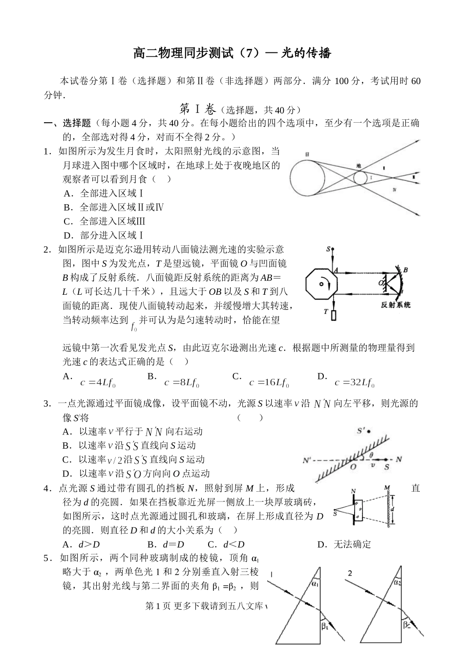 高二物理高二物理光的传播测试题及答案.doc_第1页