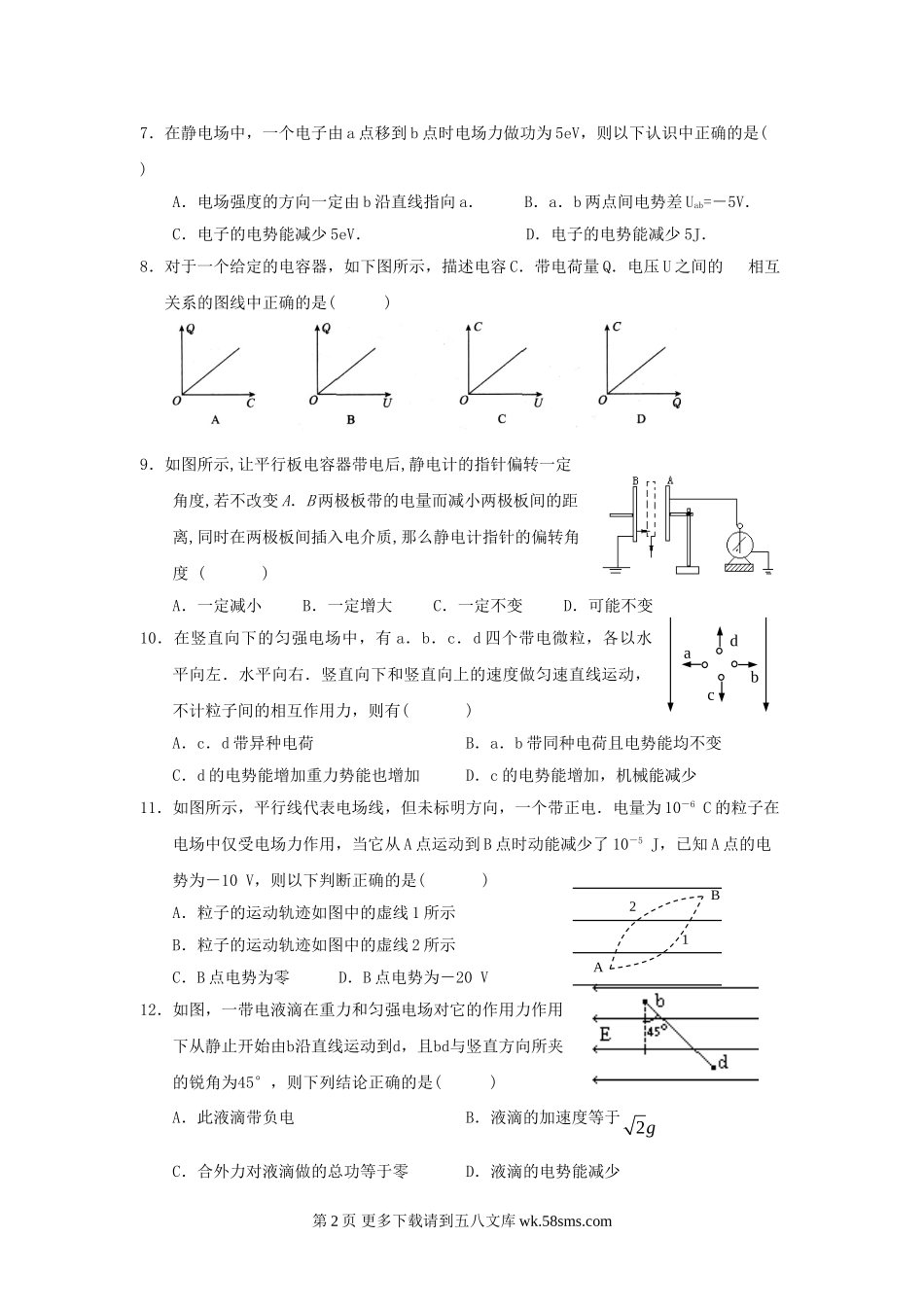 高二物理高二物理上学期期中试卷及答案.doc_第2页