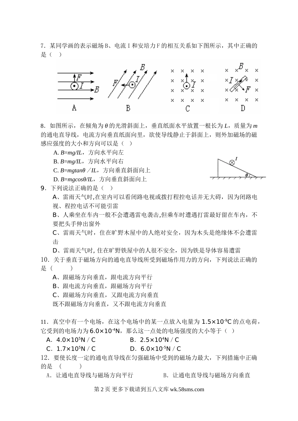 高二物理高二物理文科期中试卷及答案.doc_第2页