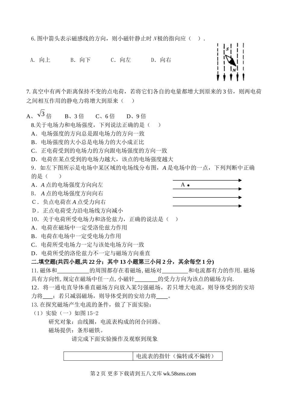 高二文科试卷命题人:宝鸡铁一中杨建升一.单项选择题(以下各题只有一个答案是正确的;每题4分,共40分)1.下列说法正确的是()A.体积小的带电体就是点电荷B.体积大的带电体,不能看成点电荷C.两个半径是0.25米的...