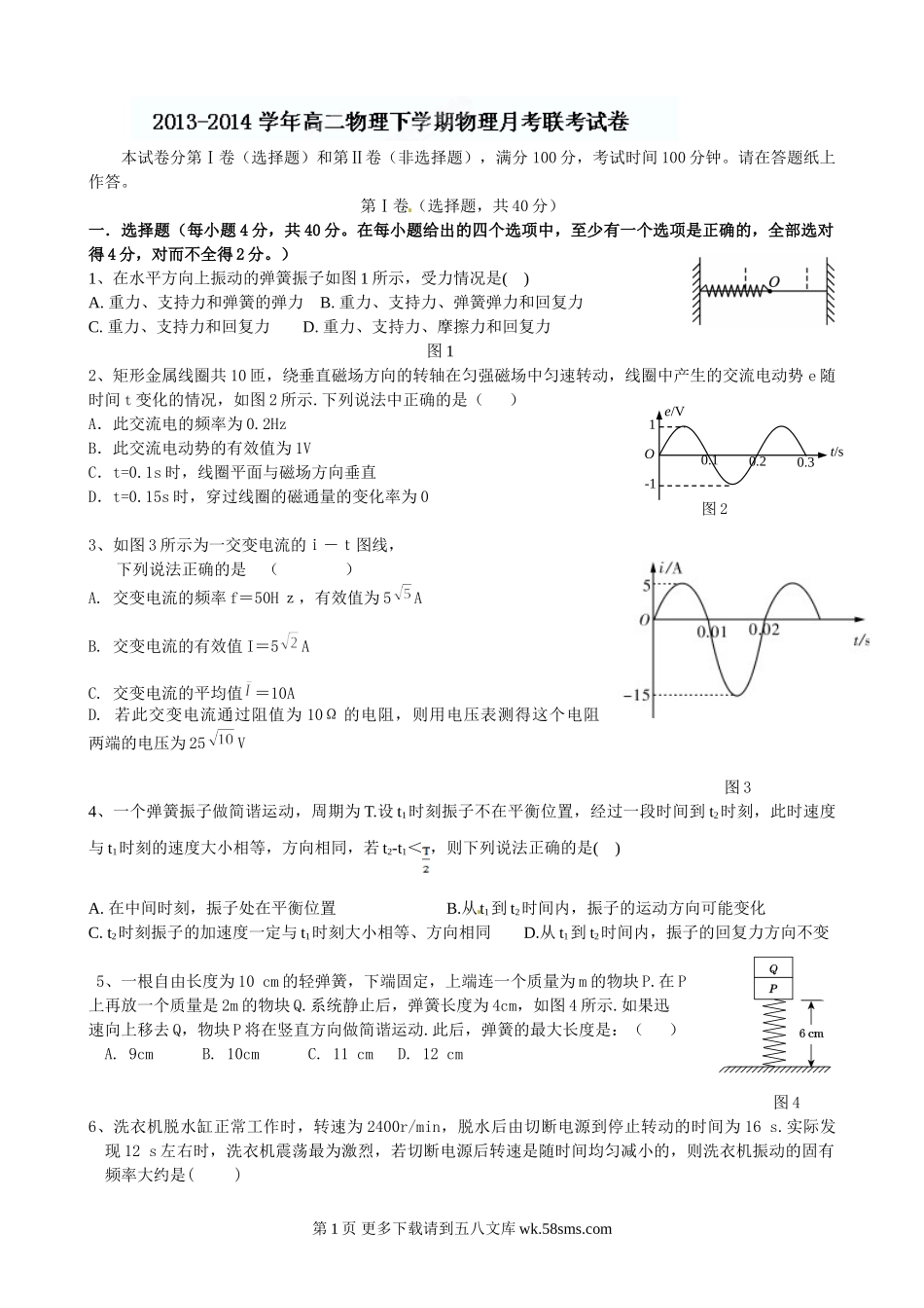 高二物理高二下3月物理月考试卷及答案.doc_第1页