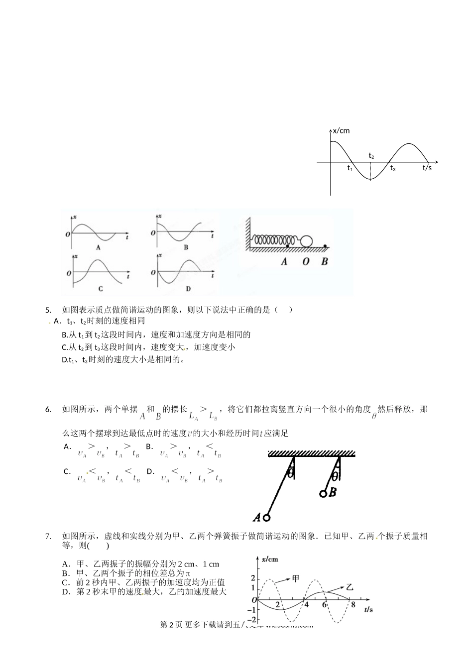 本试卷分为第Ⅰ卷(选择题)和第Ⅱ卷(非选择题),满分100分,考试时间60分钟。第I卷选择题。在下列各题的四个选项中,一个或多个选项是符合题目要求的.共15题,每题4分共60分1.关于做简谐运动的物体完成一次全...