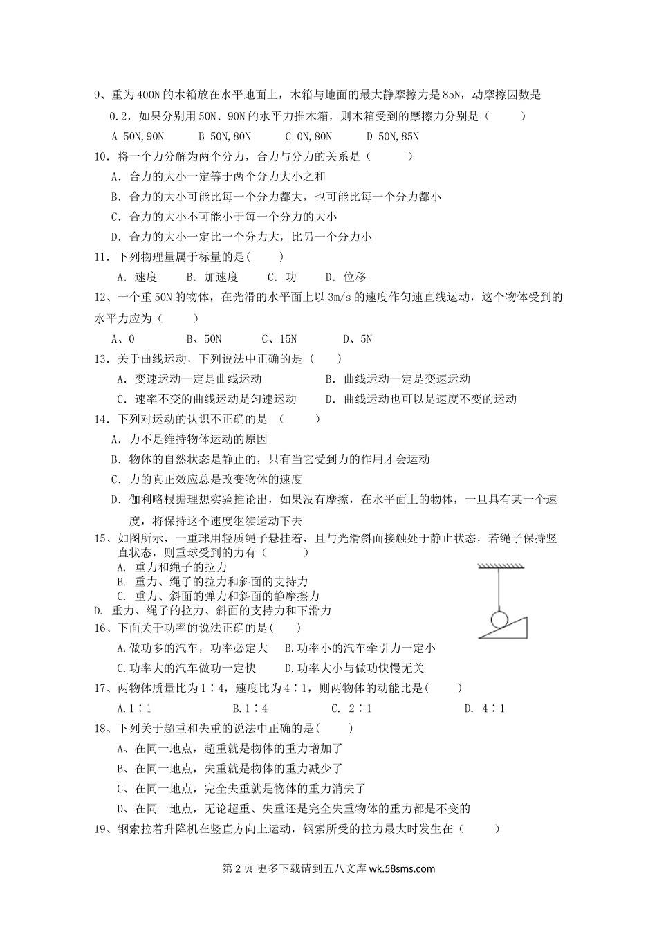 高二物理广东省高二物理学业水平测试模拟题二(文科班).doc_第2页