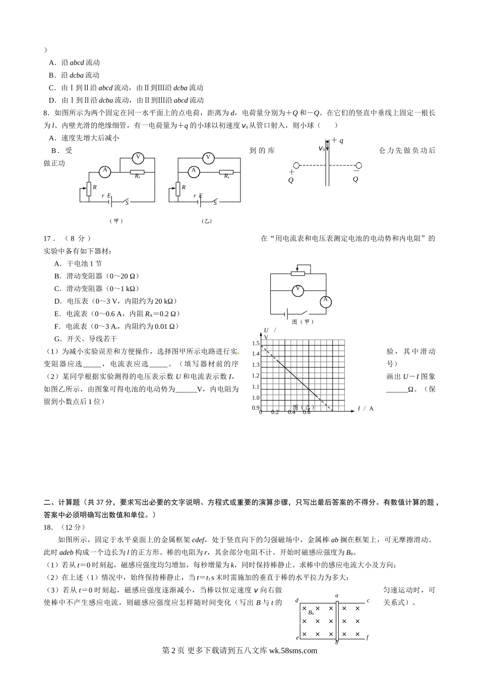高二物理哈六中高二物理期末试题及答案.doc_第2页