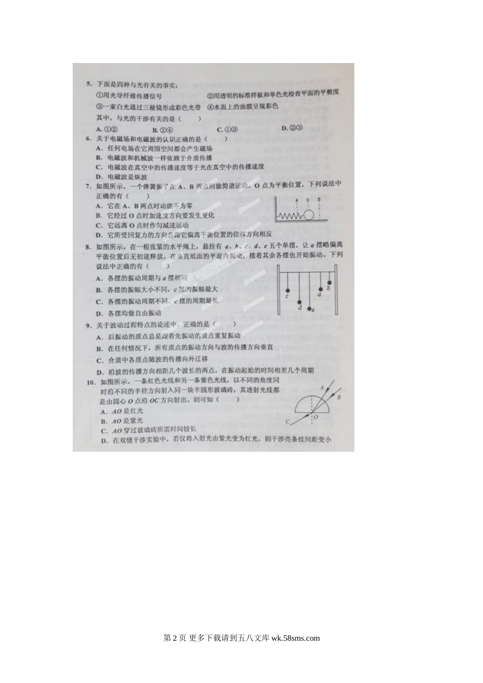 高二物理邯郸市高二下物理期末试题及答案.doc_第2页