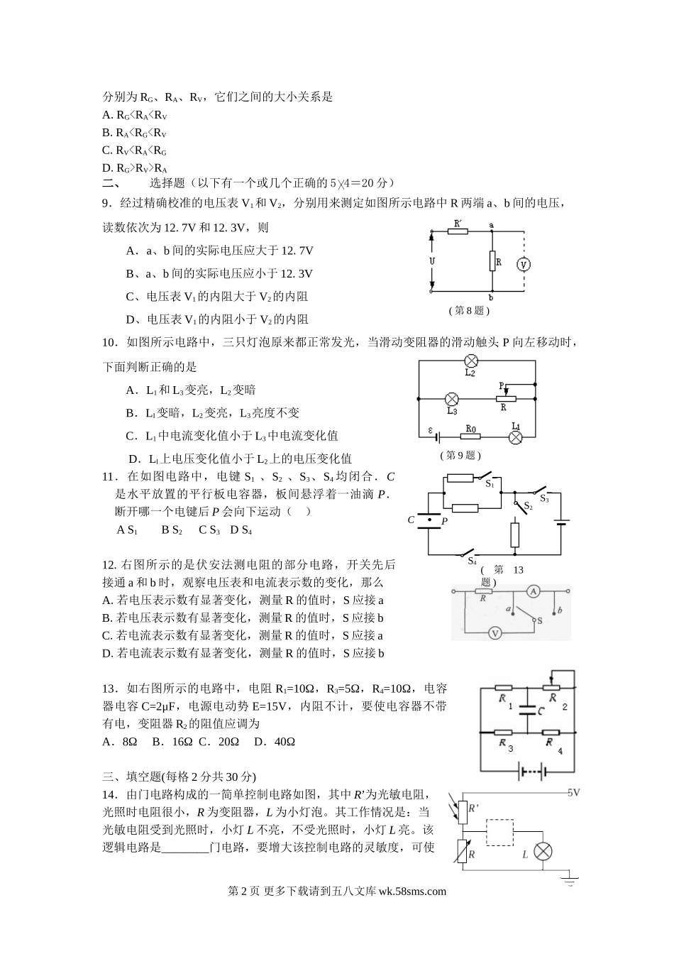 高二物理恒定电流测试题及答案.doc_第2页