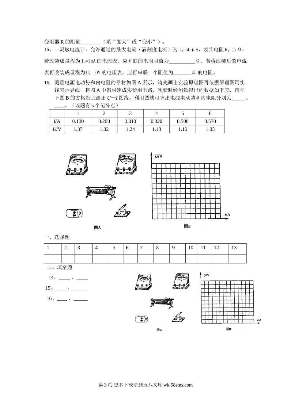 高二物理恒定电流测试题及答案.doc_第3页