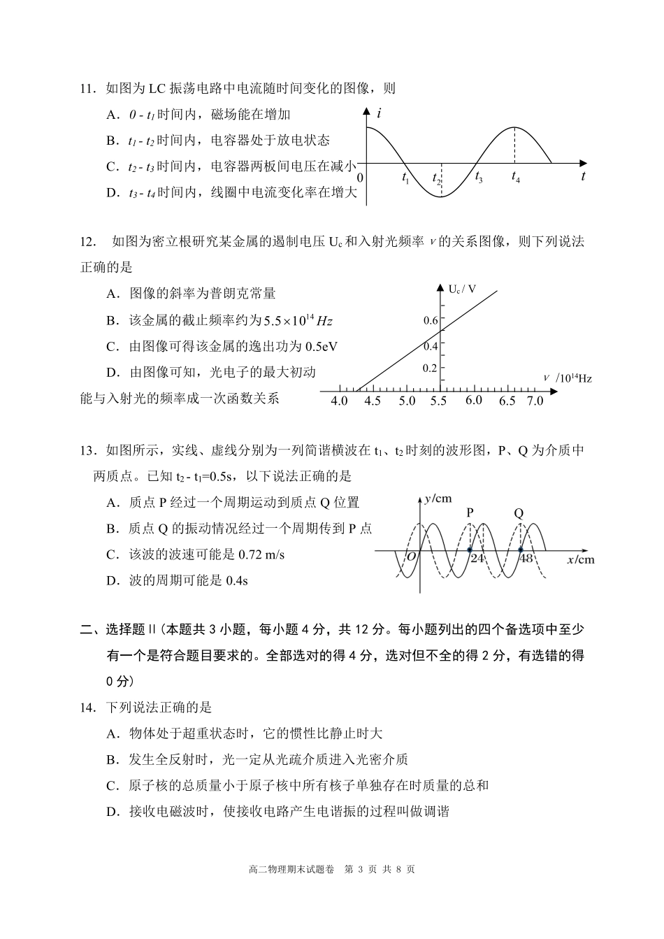 高二物理湖州市第二学期高二物理期末试卷及答案.pdf_第3页