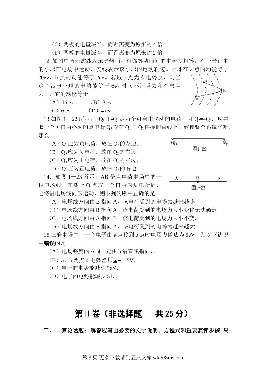 高二物理济南一中高二物理电场试题.doc_第3页