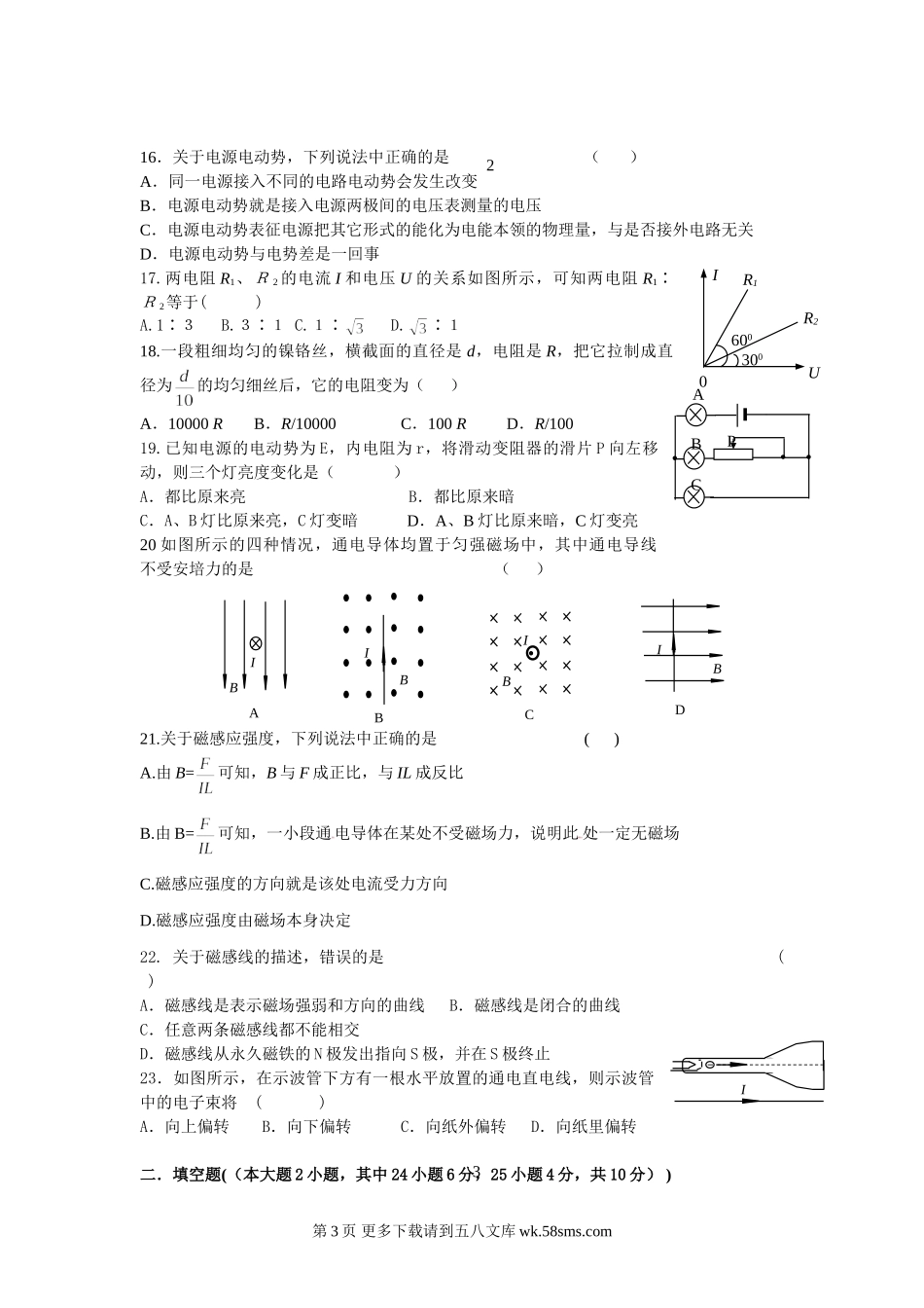 高二物理江苏省高二物理学业水平测试模拟试卷及答案(三).doc_第2页