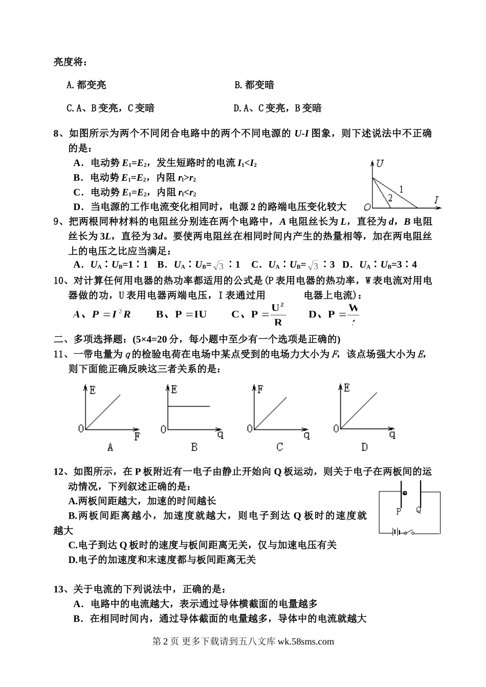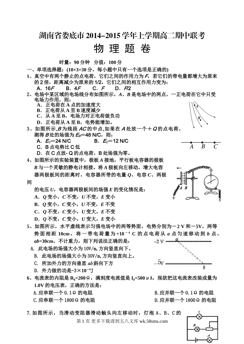 高二物理娄底市上学期高二物理期中试题及答案.doc_第2页