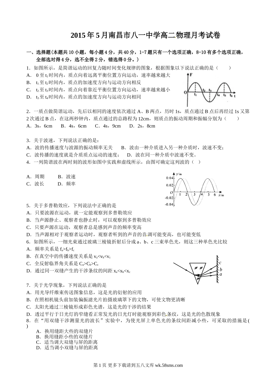 高二物理南昌八一中学高二5月月考物理试题及答案.doc_第1页