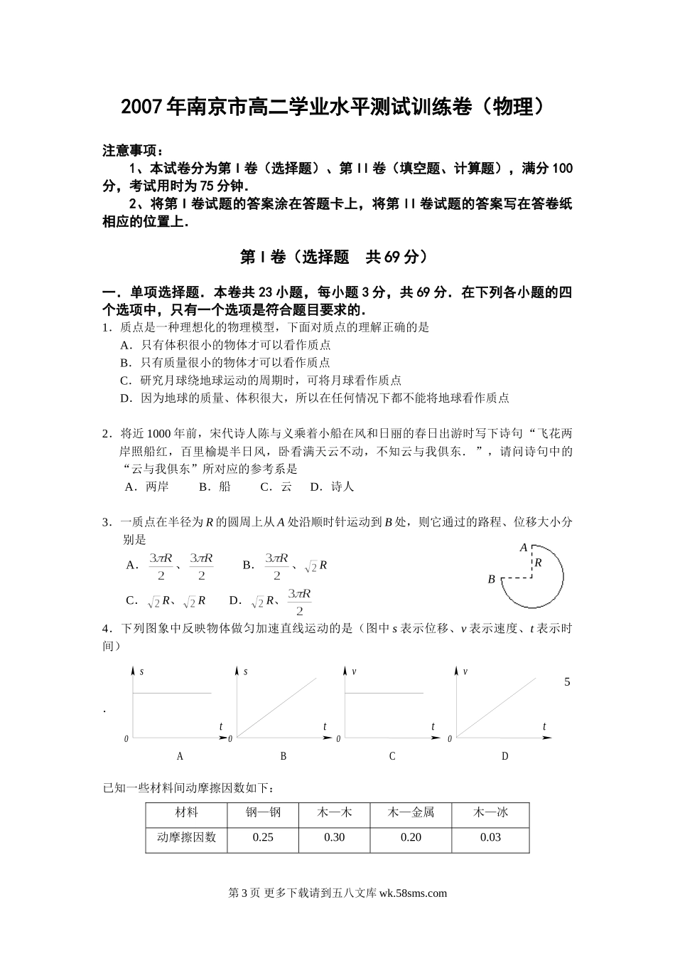 高二物理南京市高二物理学业水平测试调研卷附答案.doc_第3页