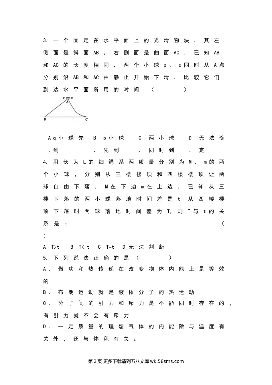 高二物理南阳市五校春高二第二次联考物理(3-3)试题及答案.doc_第2页