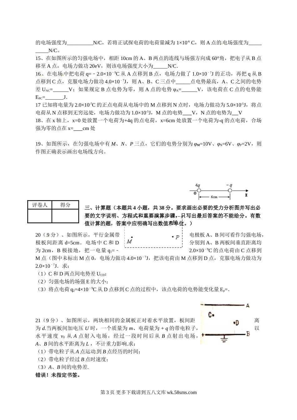 高二物理青海师大附属第二中学高二上学期第一次月考物理试卷.doc_第3页