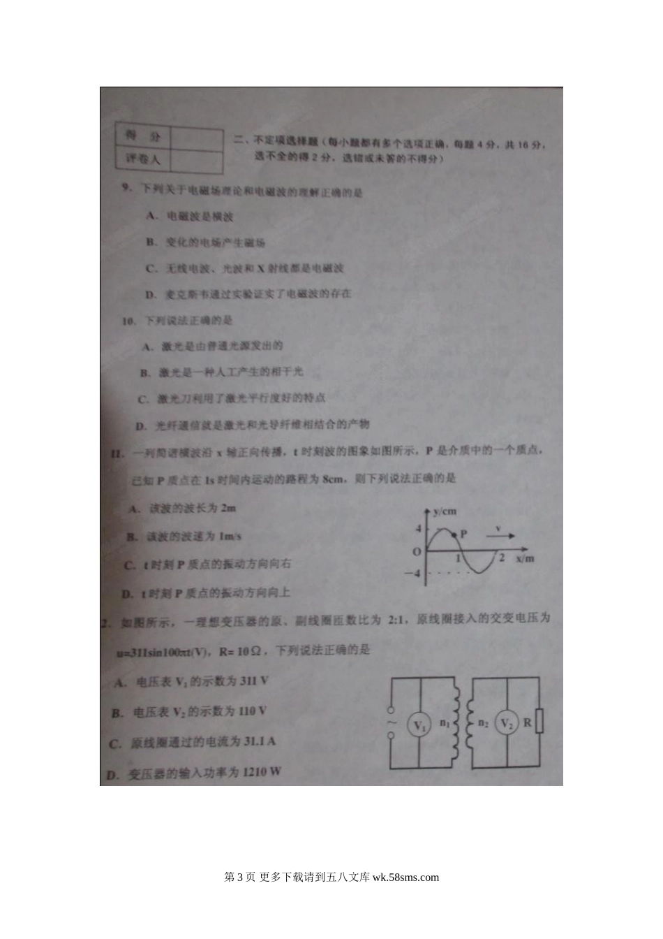 高二物理天津五区县第二学期高二期末物理试卷及答案.doc_第3页