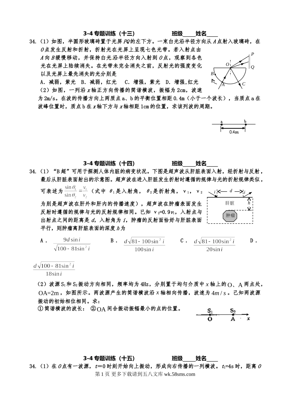 高二物理物理选修3-4专题训练(四).doc_第1页