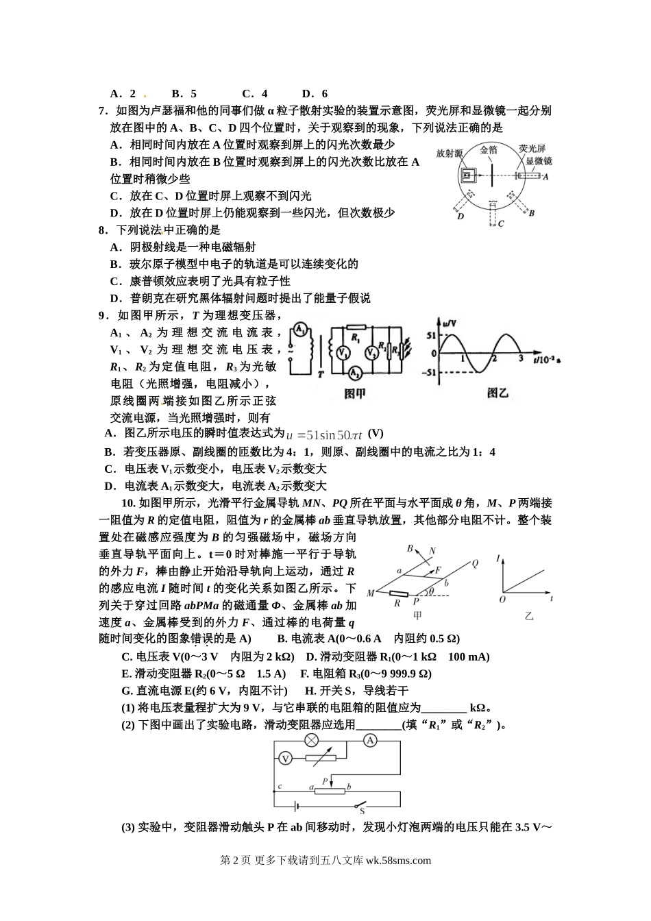 高二物理襄阳市高二下学期四校联考物理期中试题及答案.doc_第2页