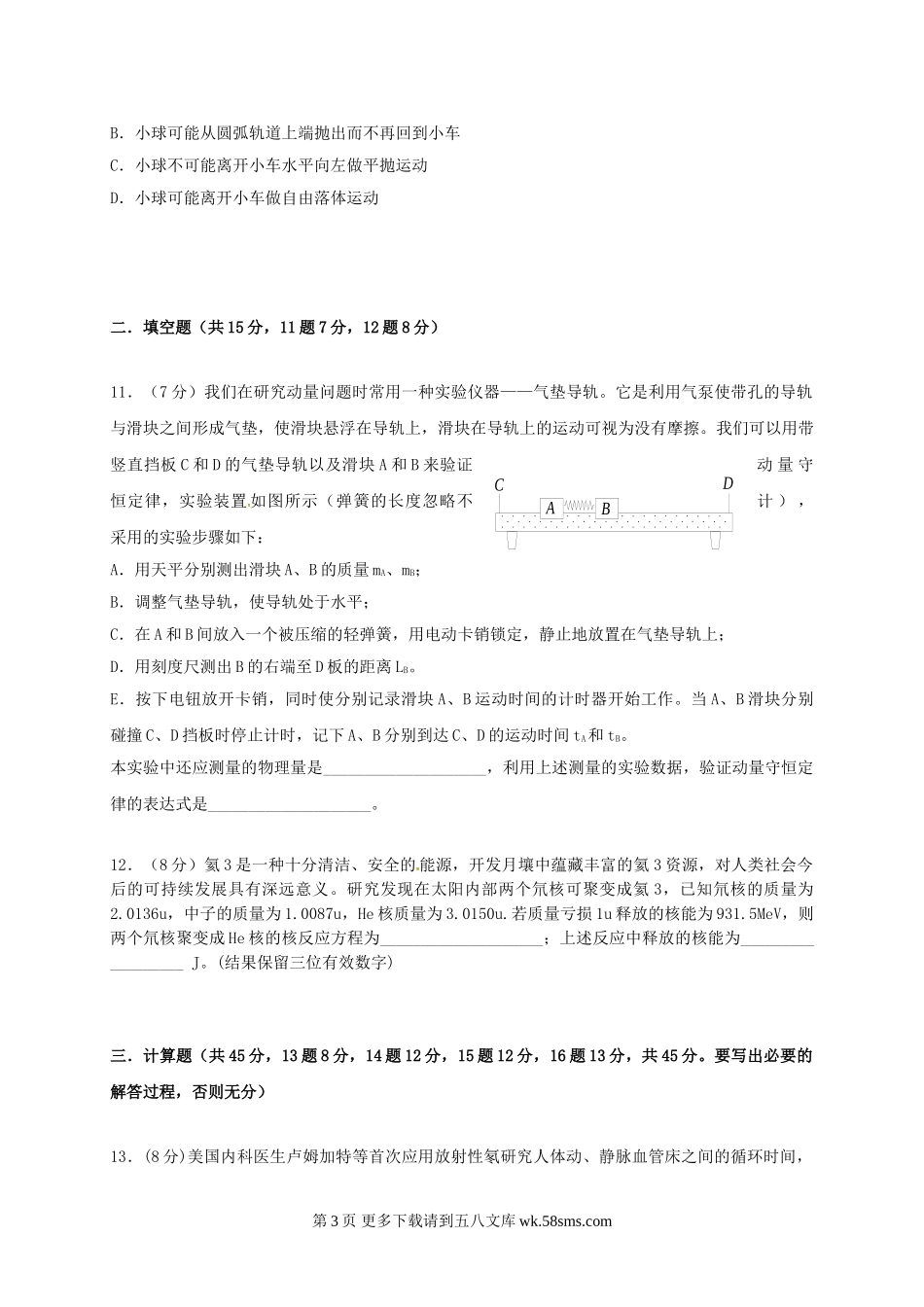 高二物理襄阳四校联考高二下学期物理期中试题及答案.doc_第3页
