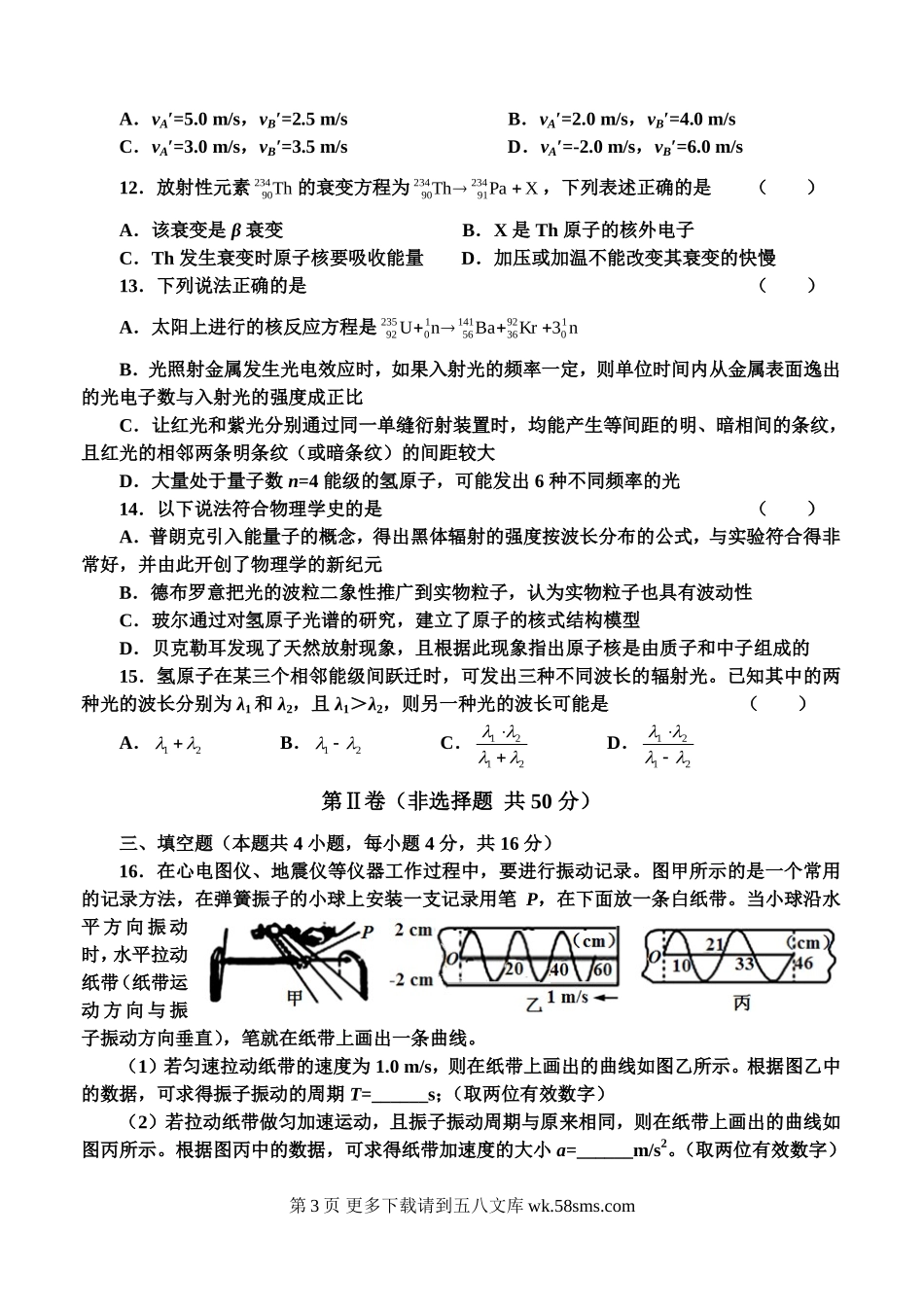 高二物理邢台一中高二6月月考物理试卷及答案.doc_第3页