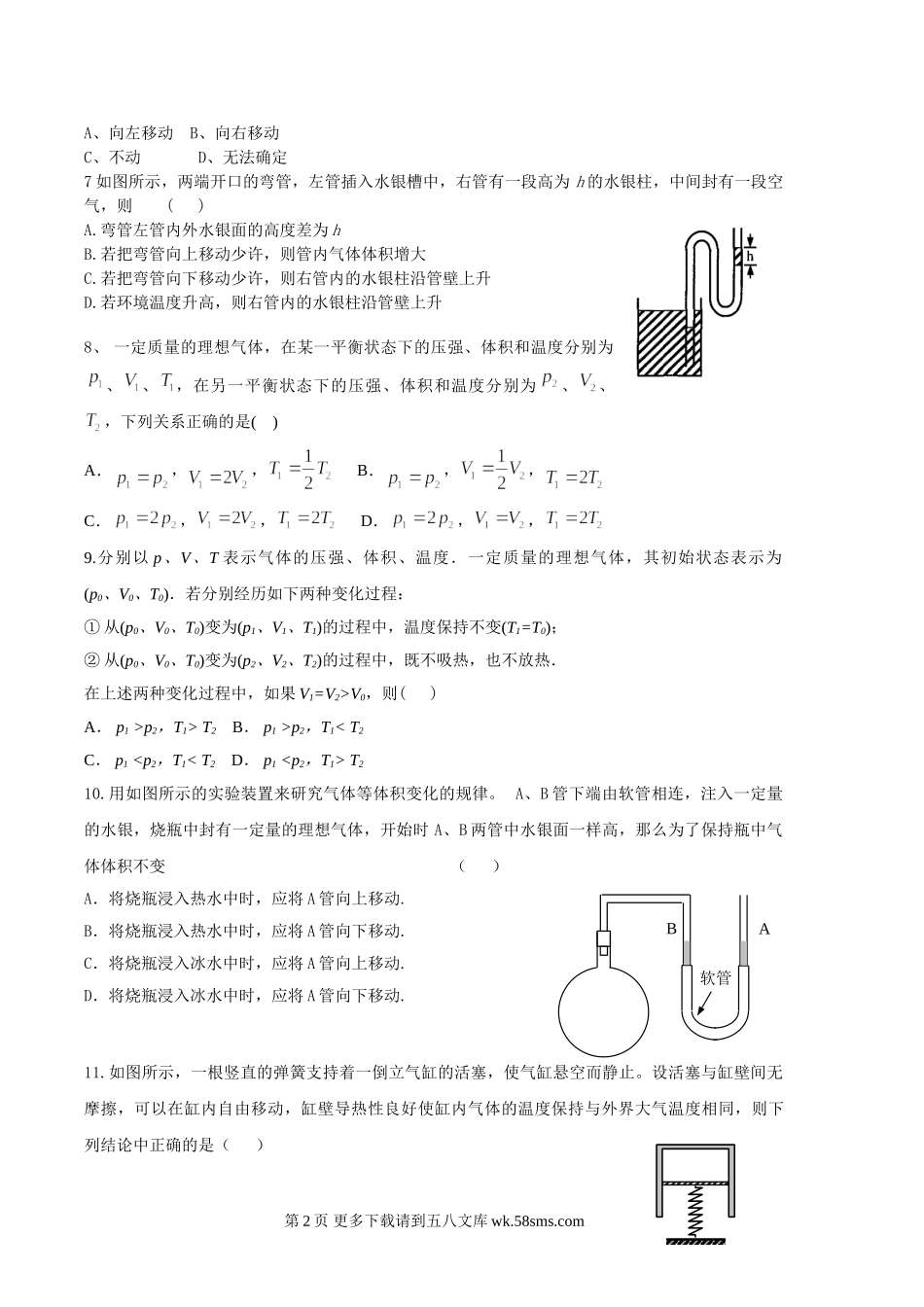 高二物理选修3-3高二物理气体测试试题.doc_第2页