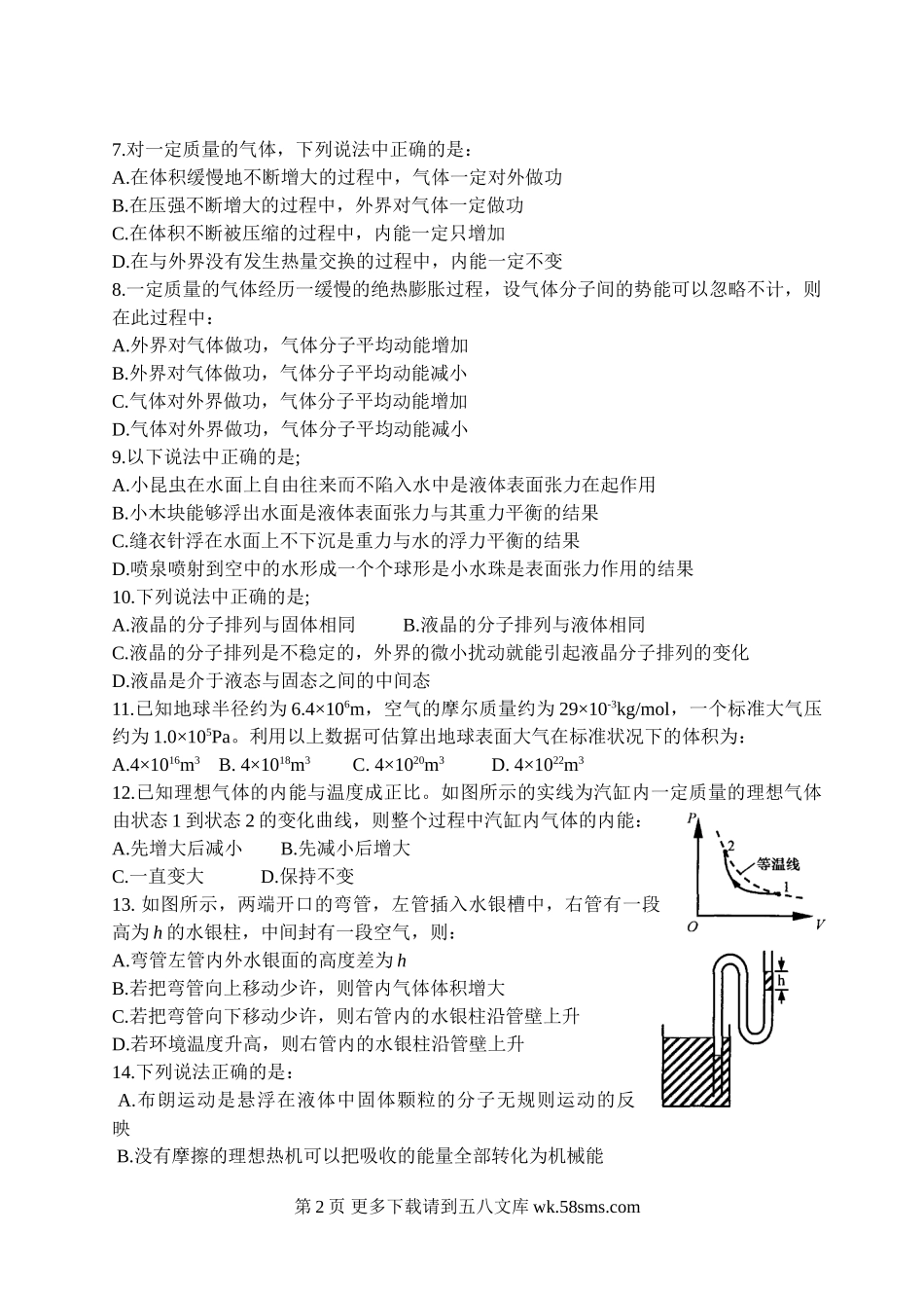 高二物理选修3-3高中物理选修期末试题.doc_第2页