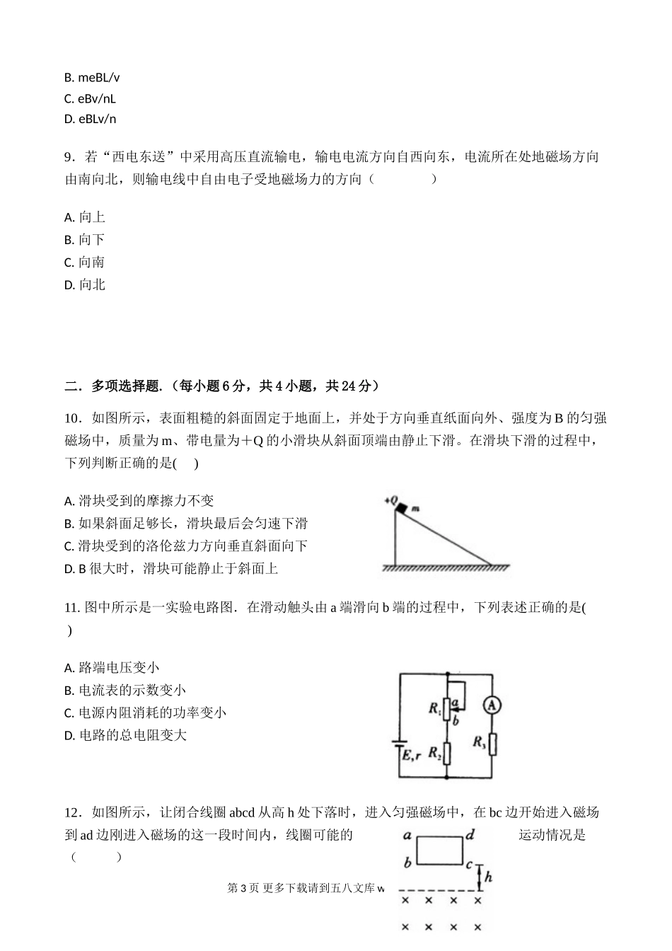 高二物理长春外国语学校高二物理上学期期末试题及答案.doc_第3页