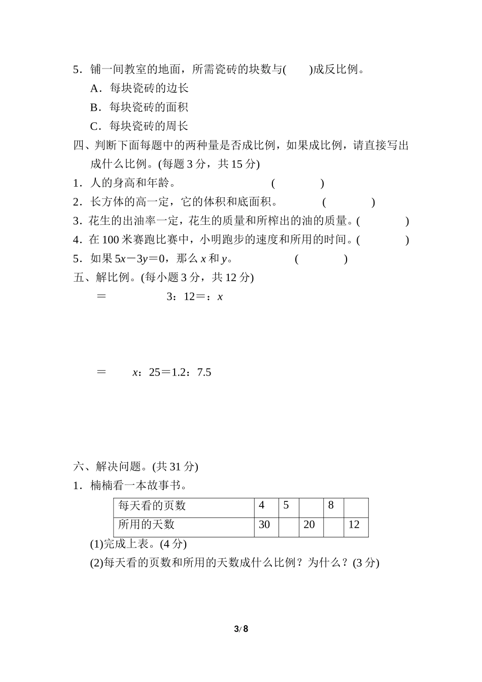 【小学六年级下册数学冀教版】周测培优卷3.doc_第3页