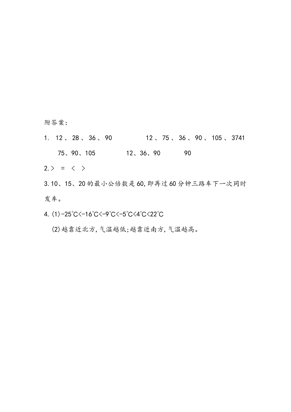 1.1数的认识1.在12、28、75、36、90、105、3741中,2的倍数有();3的倍数有();5的倍数有();既是2的倍数,又是3的倍数有();同时是2、3、5的倍数有()。2.比一比,在里填上“>”“<”或“=”。9787894.654.6507185120.94...