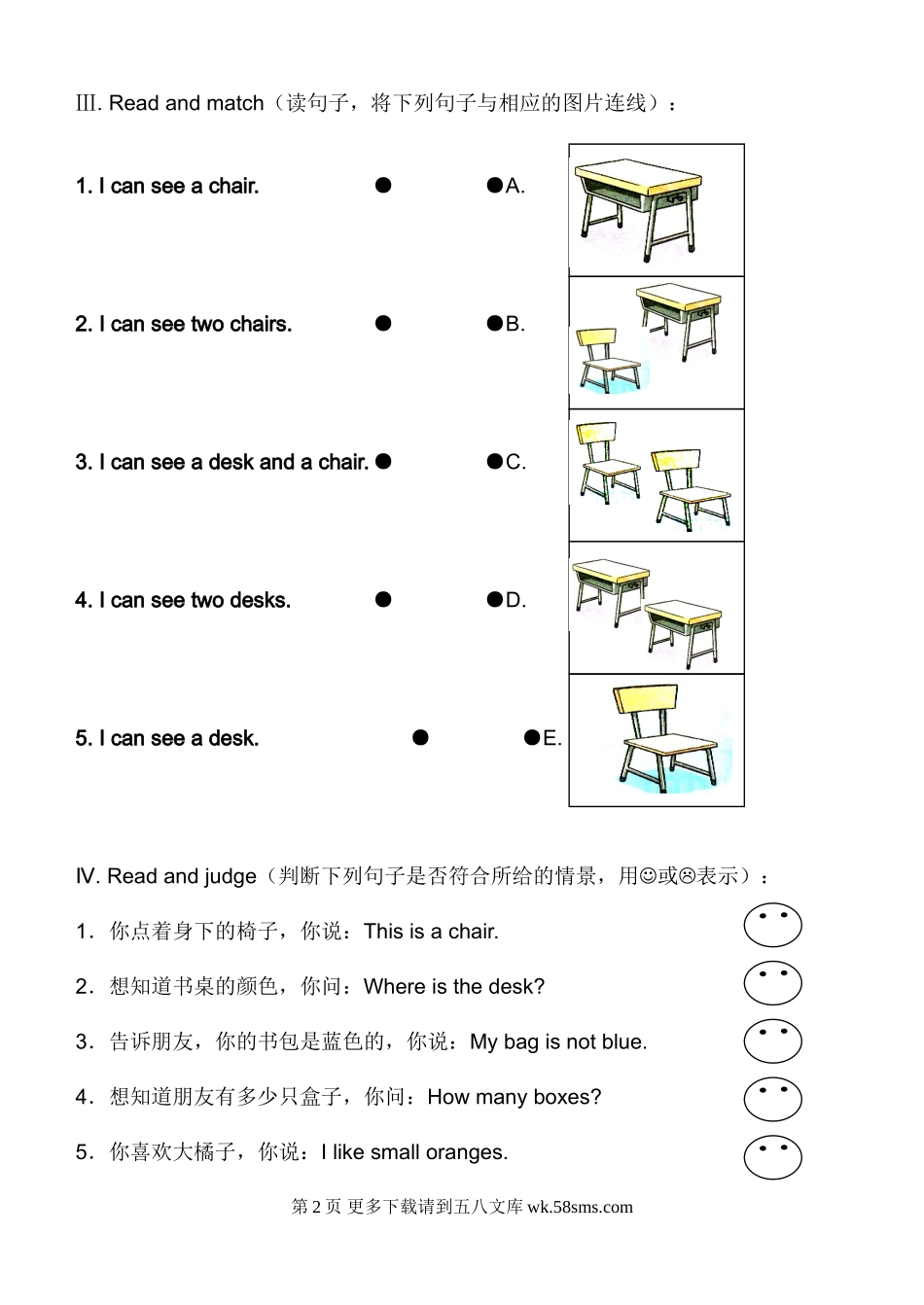 Module3PlacesandactivitiesUnit2Inmyroom(1)Ⅰ.Lookandcircle(根据所给的单词,把正确的单词部分圈出来):1.bag2.box3.desk4.chair5.orange6.pig7.theⅡ.Lookandnumber(看图,将单词的编号写在相应的图片下)...