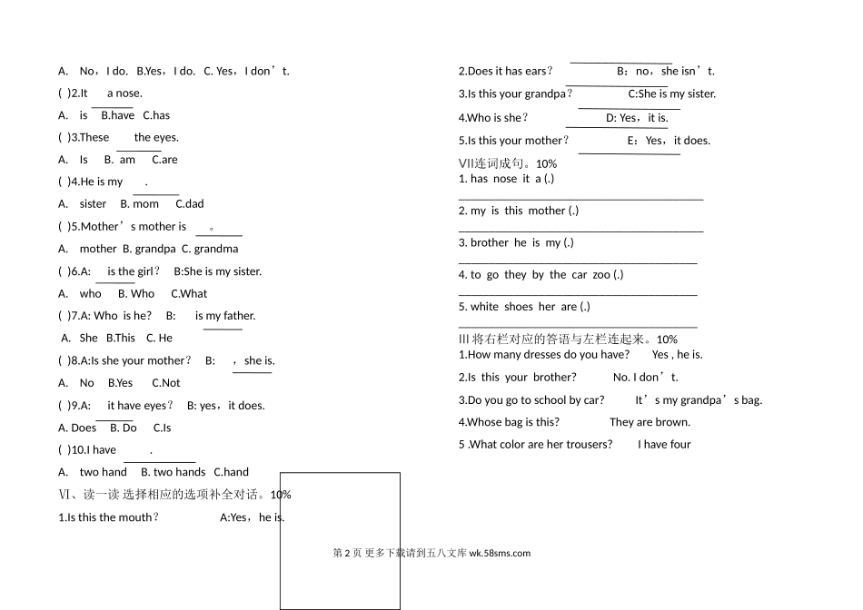 第二学期陕西旅游版三年级英语期中试卷.doc_第2页