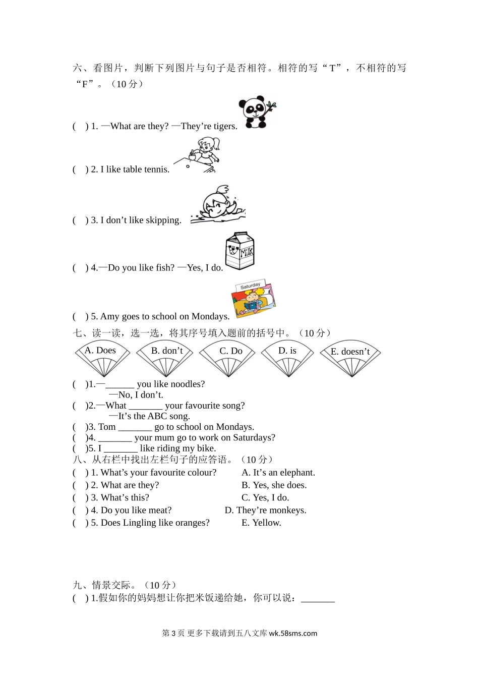 外研版2018-2019学年三年级英语下册期中试卷及答案.doc_第3页