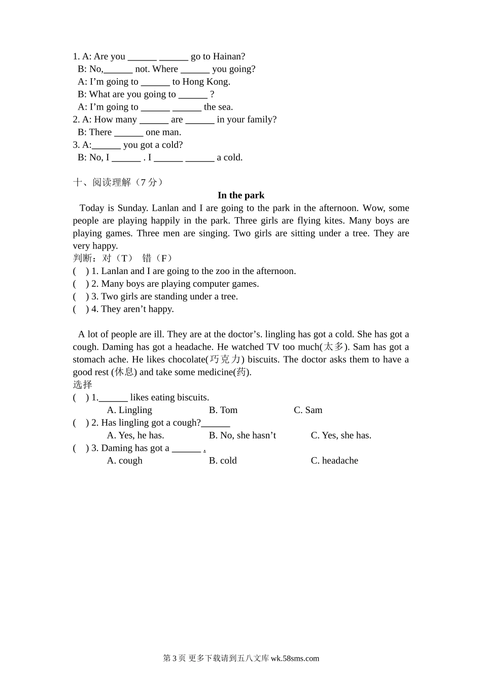 外研版三年级英语上学期第五单元测试题Module9-10.doc_第3页