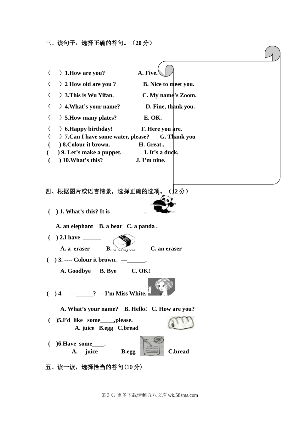 新版PEP小学英语三年级上册期末试题.doc_第3页