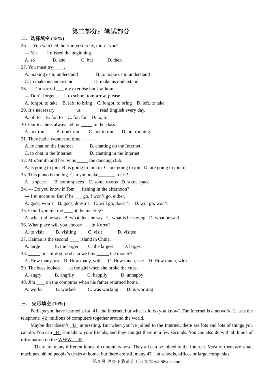 2010牛津英语八年级期末考试试卷及答案.doc_第2页
