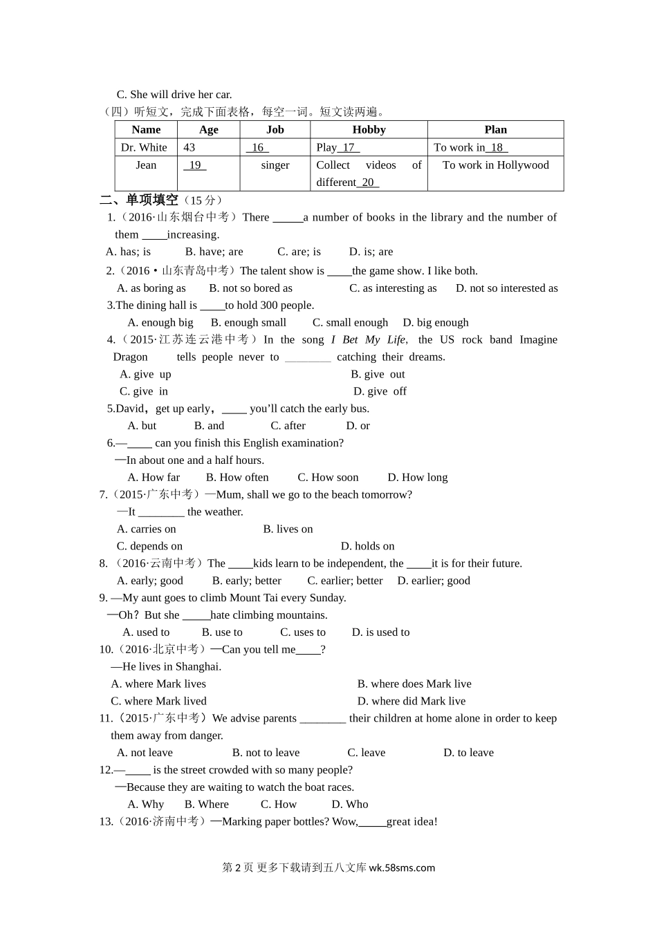 配套《中学教材全解》九年级英语(上)(人教版)期中检测题含答案解析.doc_第2页