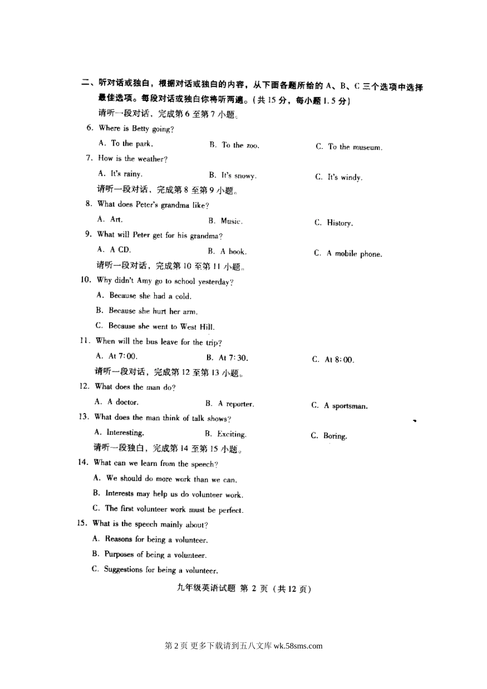 海淀区初三英语期末试题及答案.doc_第2页