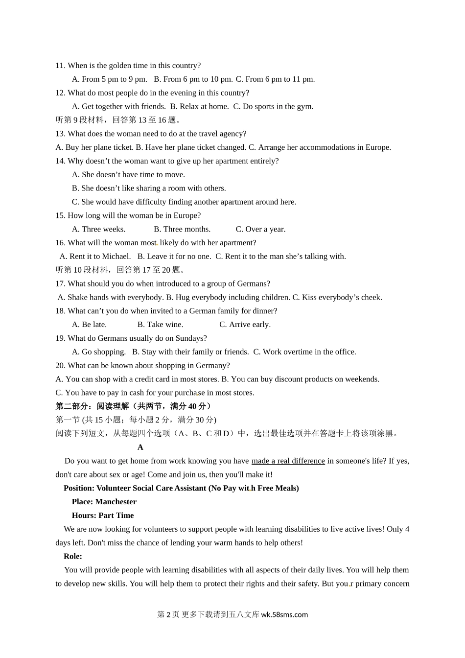 大连二十中2016-2017学年高一英语期末试卷及答案.doc_第2页